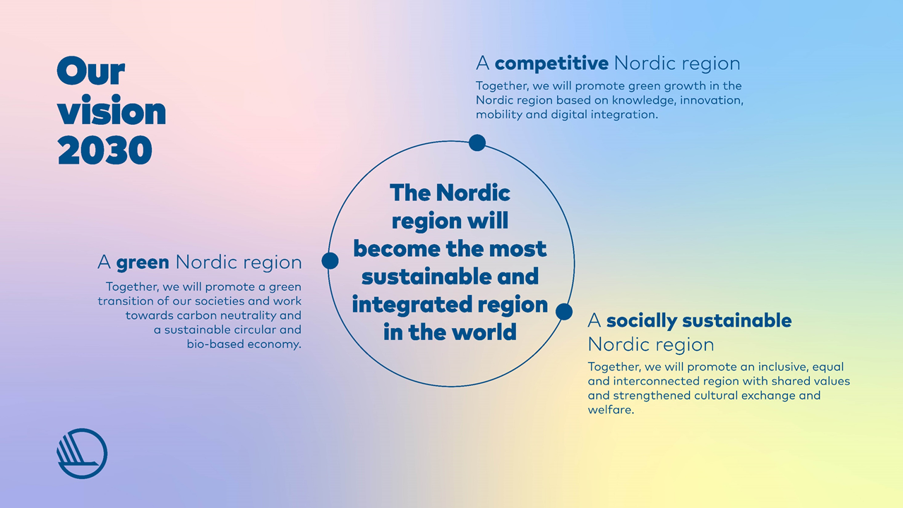Nordic co-operation is guided by Vision 2030, which aims to make the Nordic region the most sustainable and integrated in the world.