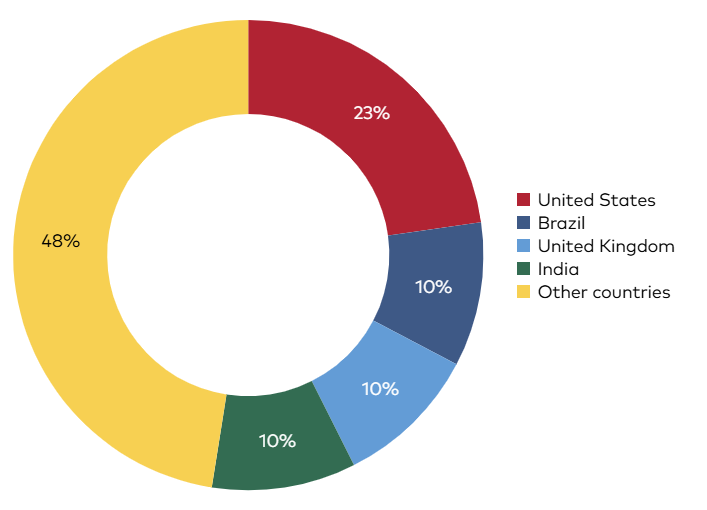 Proposals approved in 2025 covered 21 target markets. The United States remained the single largest target market with 12 projects (23%). Brazil, India and the United Kingdom each attracted 5 projects (10%), while Kenya hosted 3 projects and countries such as Canada, China, Colombia, Indonesia and Uganda each hosted 2 projects. Projects also targeted Ethiopia, Ghana, Honduras, the Maldives, New Zealand, South Africa, South Korea, Sri Lanka, Türkiye, Ukraine and the United Arab Emirates.